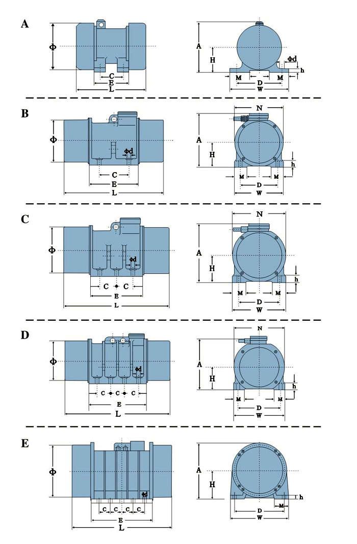 TZD振動電機是在雙軸延伸的轉(zhuǎn)子軸兩端各安裝一組可調(diào)節(jié)偏心塊,利用偏心塊旋轉(zhuǎn)產(chǎn)生的離心力得到激振力。振動電機的激振力大、能耗小、噪聲低、壽命長。它使用于料倉、料斗、溜槽的倉壁振動,還是自同步直線振動篩、振動給料機、振動輸送機等各種振動機械的理想激振源,是電力、冶金、礦山、煤炭、建材、化工等行業(yè)的必備設(shè)備,有廣泛的應(yīng)用范圍。